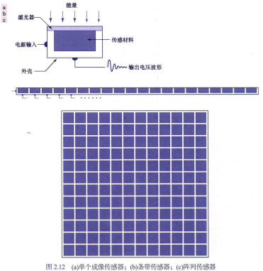 优点是将能量聚焦到阵列表面就可得到一幅完整的图像,不需要传感器排列的运动。典型如数字摄像机的典型传感器 CCD(电荷耦合器件)阵列。